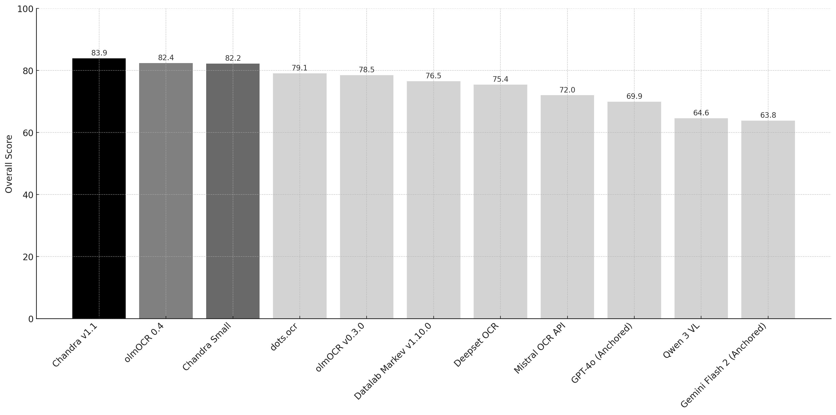We recently shipped a few updates to Chandra and our API (Making Chandra 3x faster and Chandra 1.1). Now, we’re excited to announce Chandra Small, a latency-optimized model found exclusively in the Datalab API.
