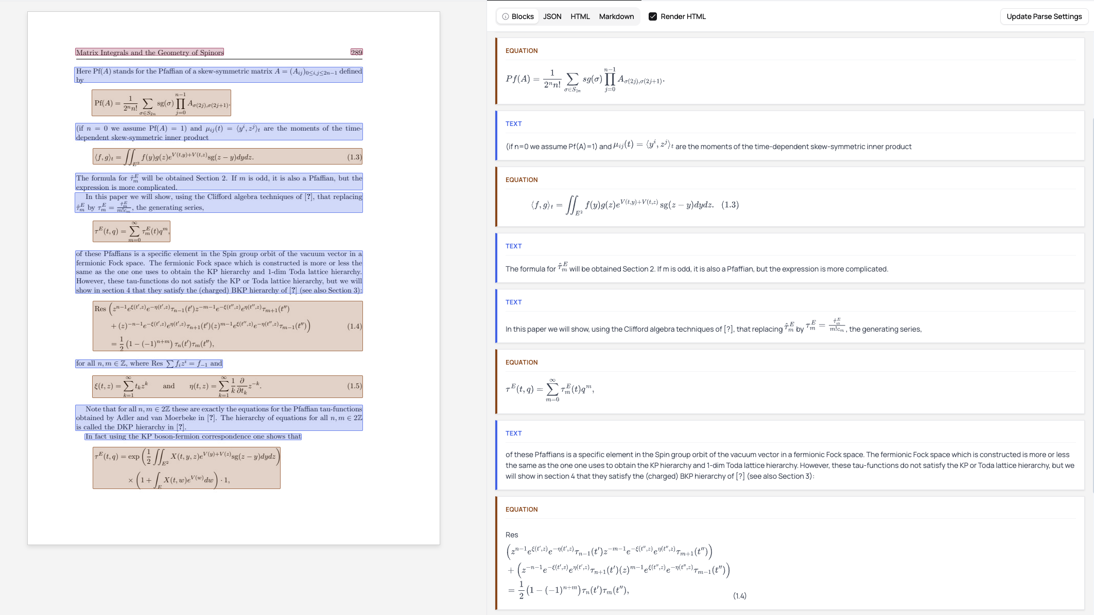 Parsing math-heavy PDFs is a complex problem: equations are not simply text — they blend symbolic, spatial, and typographic cues. Standard OCR systems often flatten them or break logical groupings.